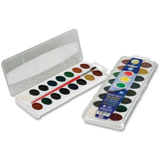 Semi-Moist Washable Watercolors easily wash off clothes and skin with soap and water. Watercolors deliver brilliant colors and intense pigments. 16-color set includes a natural hair paintbrush with a solid wood, easy grip handle. Certified AP nontoxic paints conform to ASTM standards.