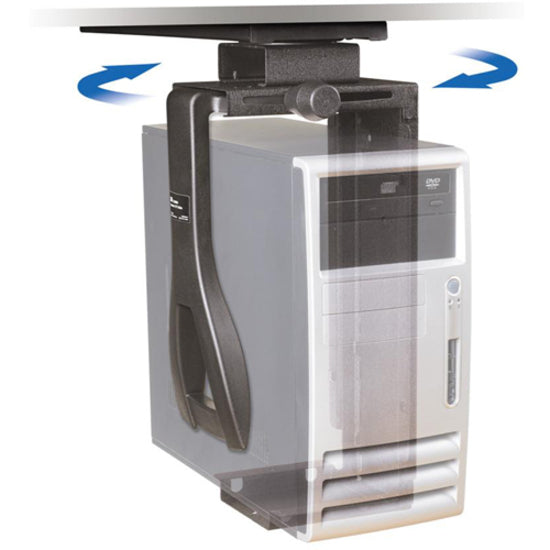 Underdesk CPU Holder mounts CPU to the underside of your worksurface. 360-degree swivel ensures easy access to back of CPU. Steel construction offers sturdy support. CPU holder accepts CPUs that are 3-1/2" to 9-5/16" wide and 12-1/2" to 22-1/2" high.