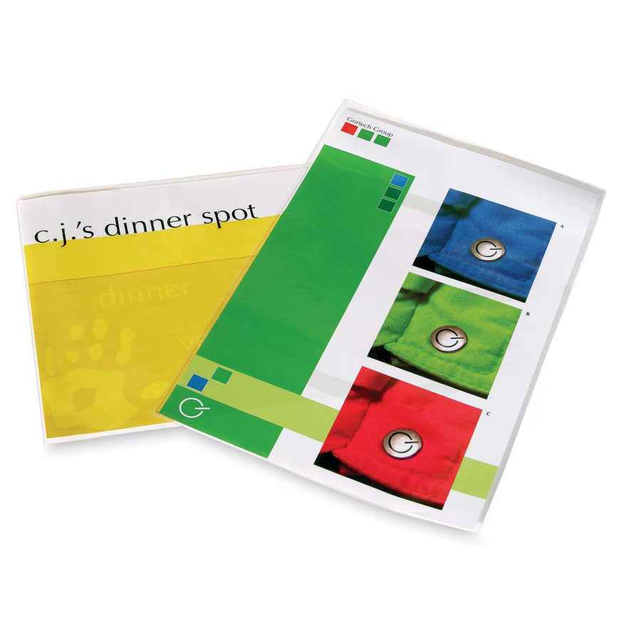 Designed with quality photo safe materials providing excellent clarity and durability to preserve and protect important documents. Dry-erase friendly and compatible with all thermal laminator brands Menu Size. 3 mil. 11-1/2" x 17-1/2". 50/pkg.