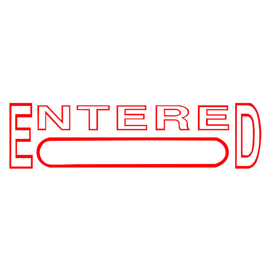 Self-inking stamp prints the word "entered" in red. Small, lightweight design allows easy impression positioning and consistent use. Self-inking design lets you quickly create clear, crisp impressions in blue ink. Water-based ink formula is nontoxic for safe handling and use. Environmentally friendly construction is made from a high percentage of post-consumer material to help minimize its global impact.