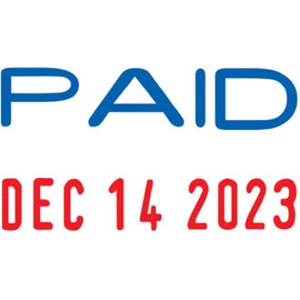 Date stamper features the word "PAID" above the date. Environmentally friendly construction is made with post-consumer material to help minimize its global impact.