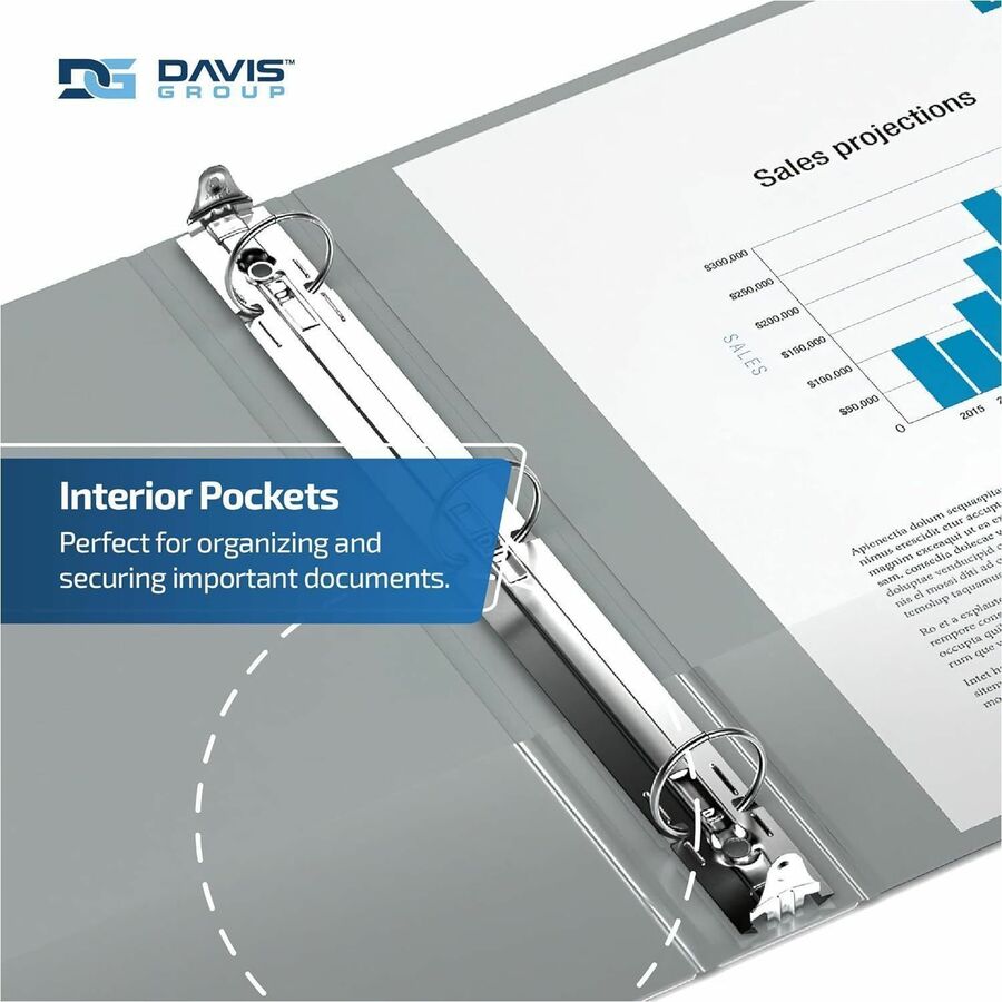 • Marketing Information: Organize your home, dorm, or office with the Premium Economy 6-Pack 3-Ring Binders for School or Office. Each 3-ring binder features 2 interior pockets: 1 inside the front cover and 1 inside the back cover. The pockets give you extra room to store small items that you don't want to punch holes in, such as artwork, loose-leaf pages, or note cards, and the clear material allows you to see what's in each pocket. Plus, each binder spine has a label holder so you can identify the contents of the binder. Whether you're looking for yellow binders, red binders, or blue binders, we have what you need. The different color options and the spine label holders make organization a breeze-no matter how many subjects you have to juggle. Each professional binder is made in Canada of PVC-free polypropylene material and will help you stay on top of every subject, deadline, and project. Davis Group is a privately owned Canadian company dedicated to providing premium-quality products. We are committed to environmentally friendly materials, and we craft each product to be high-quality, accessible, and environmentally conscious.