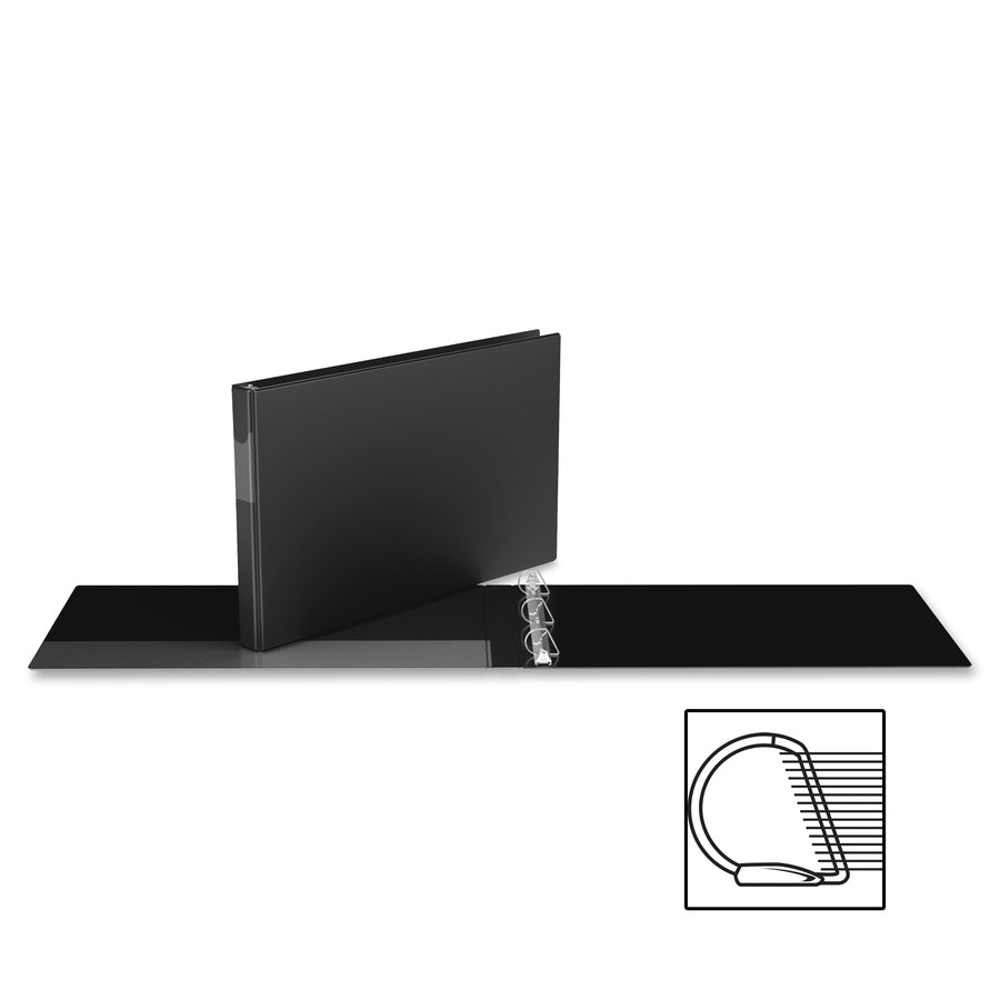 • Marketing Information: Organize your home, classroom, or office space with our heavy-duty ring binder. This landscape binder's 11-by-17-inch design is ideal for holding large, oversized spreadsheets; blueprints; engineering, mining, or construction plans; or portfolios. Constructed from heavy-duty commercial-grade grained material for durability, our landscape notebook not only makes presenting large documents easy but also lets you organize long papers with ease. From artwork to company data, each document can have a designated place in this long binder. This angle D-ring binder includes an interior pocket on the front interior cover to give you extra room to store small items that you don't want to punch holes in, such as sketches or note cards. Whether you need a reliable artwork binder or a sleek professional binder, this landscape 3-ring binder is the perfect fit. Whether you're looking for a small, medium, or large 3-ring binder, we have a binder for you. From large company ledgers to small business portfolios, our horizontal binders will secure and organize your information all in one place. Each binder is made in Canada from PVC-free polypropylene material. No matter your organizational needs, our binders will help you stay on top of every subject, deadline, and project. Davis Group is a privately owned Canadian company dedicated to providing premium-quality products. We are committed to environmentally friendly materials, and we craft each product to be high-quality, accessible, and environmentally conscious.
