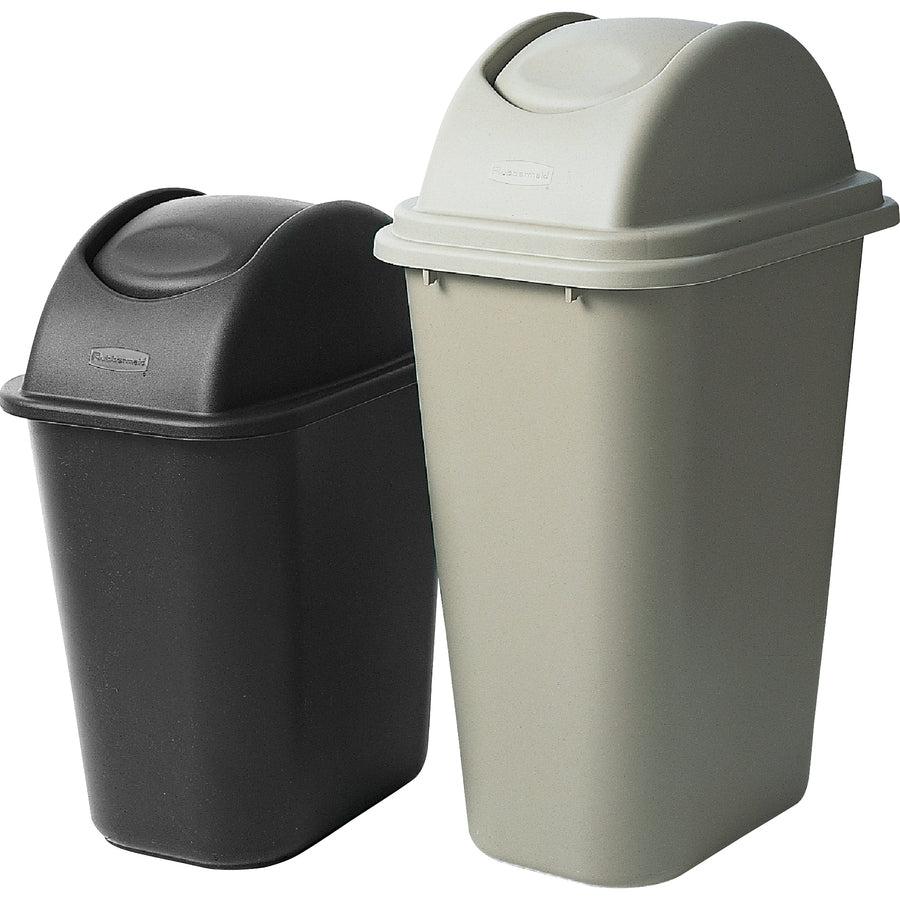 Lid is designed for Rubbermaid 2956 Wastebaskets for an aesthetic, cost-efficient upgrade to indoor waste collection systems. All-plastic construction won't chip, dent or rust. Untouchable swing top is a stylish solution to hygienic waste disposal. Conceals waste and helps contain odors. Removable domed lid features rounded shape and corners for easy cleaning. Domed design allows swing top to operate without reducing the wastebasket's capacity.