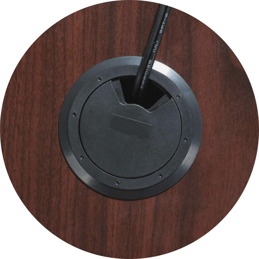 Corner hutch fits on Lorell Essentials Series Laminate Corner Desks to expand your storage space and create configurations to make the most efficient use of your office space. This series offers high-quality, Mahogany laminate construction and metal-to-metal, cam-lock connections. Hutch features a nonlocking door on each side and one open shelf in between. The radius curve top matches the style of the corner desk (sold separately). All exposed screws and cam-lock connections have matching woodgrain covers that can be applied after assembly. Design also includes 3mm PVC edges, fully closed back panel and predrilled holes with metal inserts for easy attachment.