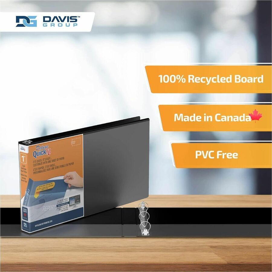 • Marketing Information: Organize your home, classroom, or office space with our QuickFit binder. From artwork to company data, each of your documents can have a designated place. Our Landscape Legal Binder is ideal for holding larger presentations and can accommodate legal-size sheets of paper (8 1/2" x 14") without folding. Our 3-ring binder includes 2 interior pockets: 1 inside the front cover and 1 inside the back cover. The pockets give you extra room to store small items that you don't want to punch holes in, such as artwork or note cards, and the clear ink-resistant material allows you to see what's in each pocket. This ledger binder also features a unique overlay design that resists ink transfer and allows you to use a single sheet to create a one-piece custom decorative insert that wraps around the spine to the front cover. Whether you need a reliable artwork binder or a sleek professional binder, our durable QuickFit landscape 3-ring binder is the perfect fit. Whether you're looking for a small, medium, or large 3-ring binder, there's a QuickFit binder for you. From large company ledgers to small business portfolios, our horizontal binders will secure and organize your information in one place. Each binder is made in Canada from PVC-free polypropylene material. No matter your organizational needs, our binders will help you stay on top of every subject, deadline, and project. Davis Group is a privately owned Canadian company dedicated to providing premium-quality products. We are committed to environmentally friendly materials, and we craft each product to be high-quality, accessible, and environmentally conscious.