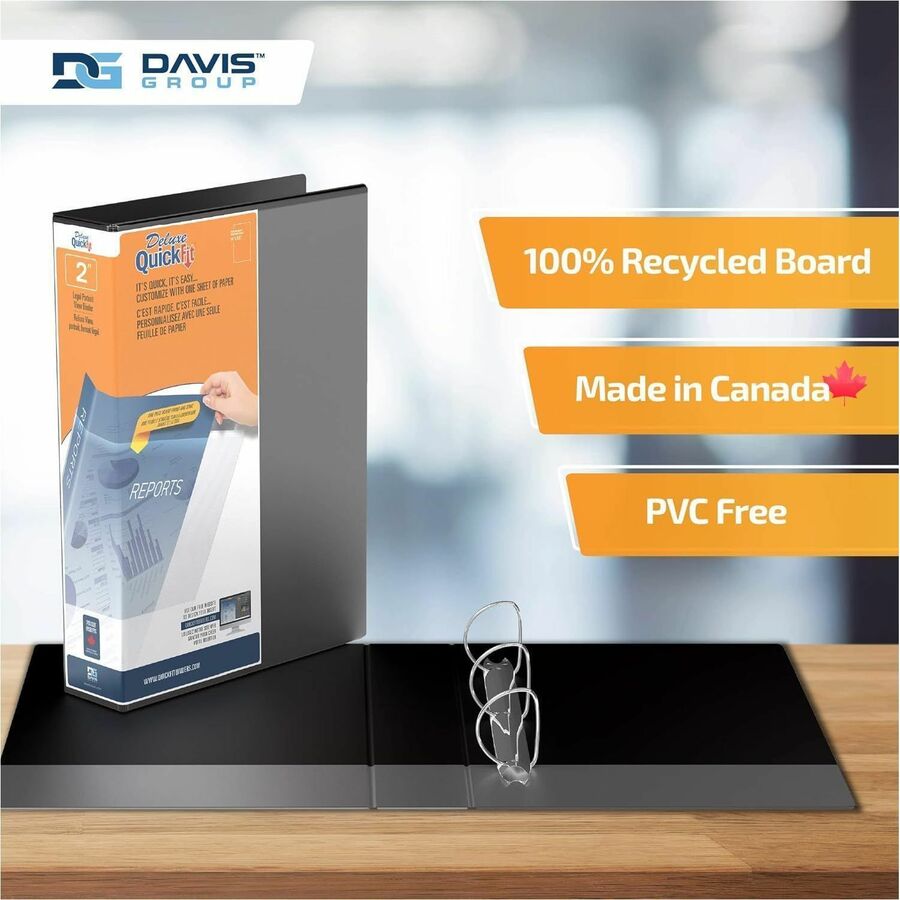 • Marketing Information: Organize your home, classroom, or office space with our QuickFit binder. From artwork to company data, each of your documents can have a designated place. Our Landscape Legal Binder is ideal for holding larger presentations and can accommodate legal-size sheets of paper (8 1/2" x 14") without folding. Our 3-ring binder includes 2 interior pockets: 1 inside the front cover and 1 inside the back cover. The pockets give you extra room to store small items that you don't want to punch holes in, such as artwork or note cards, and the clear ink-resistant material allows you to see what's in each pocket. This ledger binder also features a unique overlay design that resists ink transfer and allows you to use a single sheet to create a one-piece custom decorative insert that wraps around the spine to the front cover. Whether you need a reliable artwork binder or a sleek professional binder, our durable QuickFit landscape 3-ring binder is the perfect fit. Whether you're looking for a small, medium, or large 3-ring binder, there's a QuickFit binder for you. From large company ledgers to small business portfolios, our horizontal binders will secure and organize your information in one place. Each binder is made in Canada from PVC-free polypropylene material. No matter your organizational needs, our binders will help you stay on top of every subject, deadline, and project. Davis Group is a privately owned Canadian company dedicated to providing premium-quality products. We are committed to environmentally friendly materials, and we craft each product to be high-quality, accessible, and environmentally conscious.