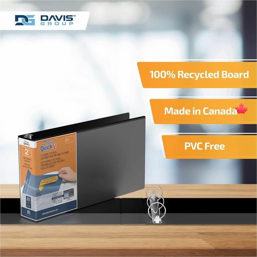 • Marketing Information: Organize your home, classroom, or office space with our QuickFit binder. From artwork to company data, each of your documents can have a designated place. Our Landscape Legal Binder is ideal for holding larger presentations and can accommodate legal-size sheets of paper (8 1/2" x 14") without folding. Our 3-ring binder includes 2 interior pockets: 1 inside the front cover and 1 inside the back cover. The pockets give you extra room to store small items that you don't want to punch holes in, such as artwork or note cards, and the clear ink-resistant material allows you to see what's in each pocket. This ledger binder also features a unique overlay design that resists ink transfer and allows you to use a single sheet to create a one-piece custom decorative insert that wraps around the spine to the front cover. Whether you need a reliable artwork binder or a sleek professional binder, our durable QuickFit landscape 3-ring binder is the perfect fit. Whether you're looking for a small, medium, or large 3-ring binder, there's a QuickFit binder for you. From large company ledgers to small business portfolios, our horizontal binders will secure and organize your information in one place. Each binder is made in Canada from PVC-free polypropylene material. No matter your organizational needs, our binders will help you stay on top of every subject, deadline, and project. Davis Group is a privately owned Canadian company dedicated to providing premium-quality products. We are committed to environmentally friendly materials, and we craft each product to be high-quality, accessible, and environmentally conscious.