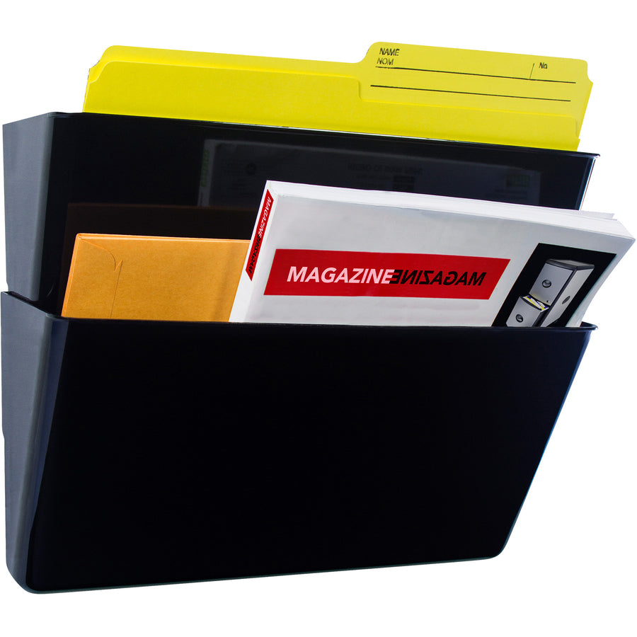 File pocket maximizes your storage space by allowing you to keep important files conveniently on the wall. Back wall ensures that no paper, big or small, will slip between the cracks. Three types of mounting hardware are included for convenient placement virtually anywhere. File pocket is designed for use with letter-size items.