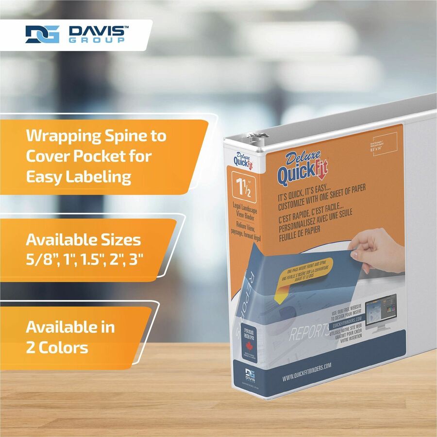 Marketing Information: Organize your home, classroom, or office space with our QuickFit binder. From artwork to company data, each of your documents can have a designated place. Our Landscape Legal Binder is ideal for holding larger presentations and can accommodate legal-size sheets of paper (8 1/2" x 14") without folding. Our 3-ring binder includes 2 interior pockets: 1 inside the front cover and 1 inside the back cover. The pockets give you extra room to store small items that you don't want to punch holes in, such as artwork or note cards, and the clear ink-resistant material allows you to see what's in each pocket. This ledger binder also features a unique overlay design that resists ink transfer and allows you to use a single sheet to create a one-piece custom decorative insert that wraps around the spine to the front cover. Whether you need a reliable artwork binder or a sleek professional binder, our durable QuickFit landscape 3-ring binder is the perfect fit. Whether you're looking for a small, medium, or large 3-ring binder, there's a QuickFit binder for you. From large company ledgers to small business portfolios, our horizontal binders will secure and organize your information in one place. Each binder is made in Canada from PVC-free polypropylene material. No matter your organizational needs, our binders will help you stay on top of every subject, deadline, and project. Davis Group is a privately owned Canadian company dedicated to providing premium-quality products. We are committed to environmentally friendly materials, and we craft each product to be high-quality, accessible, and environmentally conscious.
