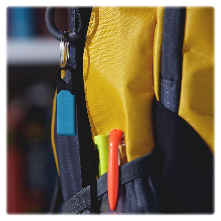 Rugged, sleek and small, this portable USB drive is perfect for storing music, videos, school projects or photos. Built-in key ring conveniently clips onto key chains, binders, notebooks and more. USB connectors are protected by a flexible rubber cover that is built to withstand rough handling. 32GB drive is compatible with all USB ports on both Macs and PCs. Ruggedized SIP (System in Package) Design encapsulates and protects electronic components from water, dust and debris. Flexible protective cover shields USB connector. Password-protection software for this Micro Plus USB Flash Drive is available for download.
