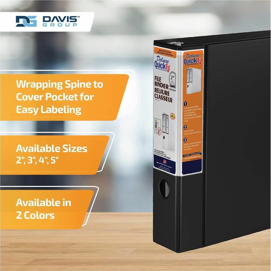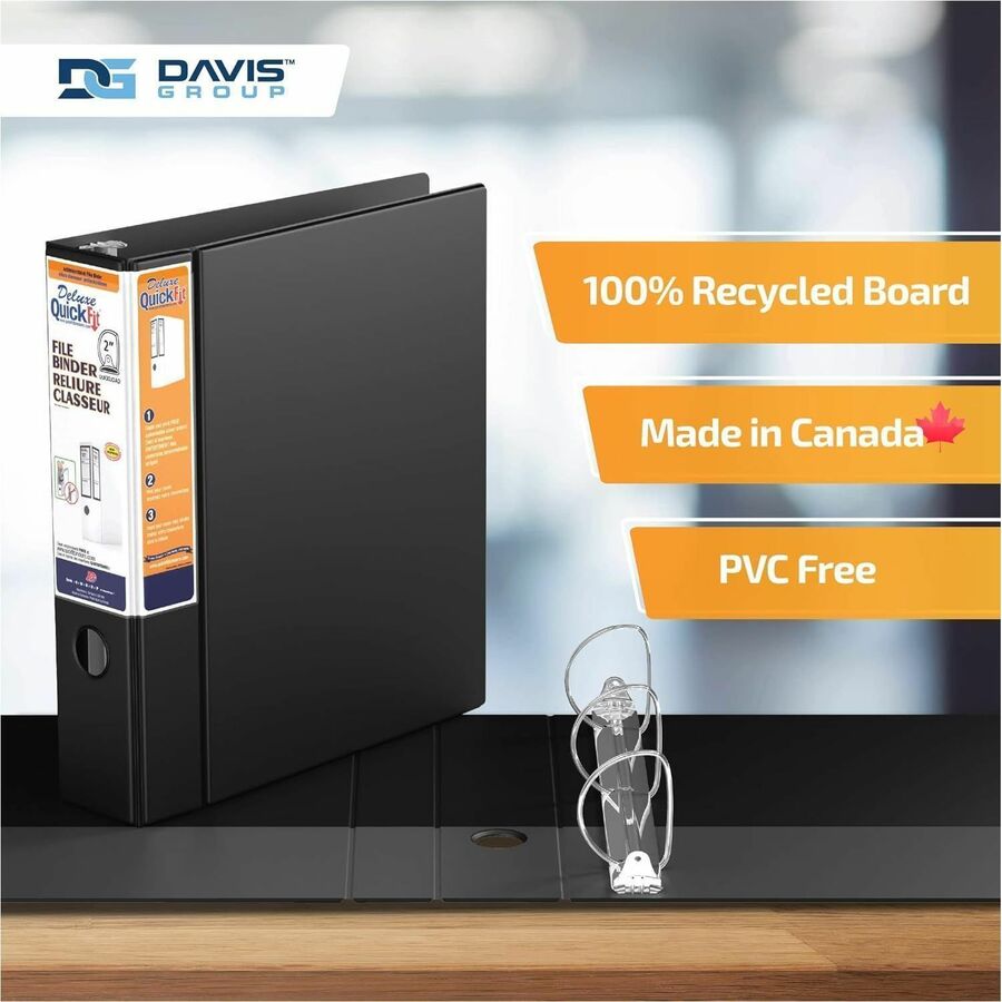 Marketing Information: Organize your home, school, or office space with our QuickFit Heavy-Duty 3-Ring File Binder. From school plans to company data, each of your documents can have a designated place. This three-ring binder includes 2 interior pockets: 1 inside the front cover and 1 inside the back cover. The pockets give you extra room to store small items that you don't want to punch holes in, such as artwork, blueprints, or note cards, and the clear ink-resistant material allows you to see what's in each pocket. This durable binder also features a unique overlay design that allows you to use a single sheet of paper to design a custom decorative leaf insert that wraps around the spine to the front cover. An insert is easy to place and allows you to quickly identify your binder. Whether you need a college binder or a sleek professional binder, our QuickFit Heavy-Duty 3-Ring File Binder is the perfect fit. Whether you're looking for a small, medium, or large binder, there's a QuickFit binder for you. Each binder is made in Canada from PVC-free polypropylene material. No matter your organizational needs, our binders will help you stay on top of every subject, deadline, and project. Davis Group is a privately owned Canadian company dedicated to providing premium-quality products. We are committed to using environmentally friendly materials, and we craft each product to be high-quality, accessible, and environmentally conscious.