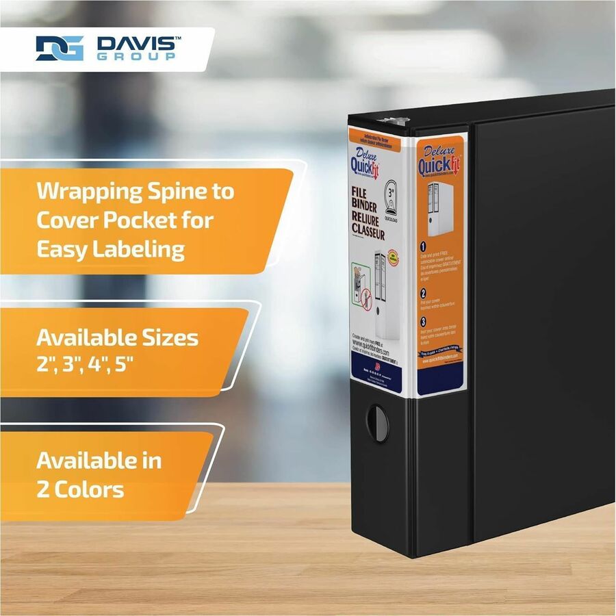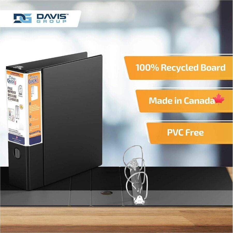 • Marketing Information: Organize your home, school, or office space with our QuickFit Heavy-Duty 3-Ring File Binder. From school plans to company data, each of your documents can have a designated place. This three-ring binder includes 2 interior pockets: 1 inside the front cover and 1 inside the back cover. The pockets give you extra room to store small items that you don't want to punch holes in, such as artwork, blueprints, or note cards, and the clear ink-resistant material allows you to see what's in each pocket. This durable binder also features a unique overlay design that allows you to use a single sheet of paper to design a custom decorative leaf insert that wraps around the spine to the front cover. An insert is easy to place and allows you to quickly identify your binder. Whether you need a college binder or a sleek professional binder, our QuickFit Heavy-Duty 3-Ring File Binder is the perfect fit. Whether you're looking for a small, medium, or large binder, there's a QuickFit binder for you. Each binder is made in Canada from PVC-free polypropylene material. No matter your organizational needs, our binders will help you stay on top of every subject, deadline, and project. Davis Group is a privately owned Canadian company dedicated to providing premium-quality products. We are committed to using environmentally friendly materials, and we craft each product to be high-quality, accessible, and environmentally conscious.