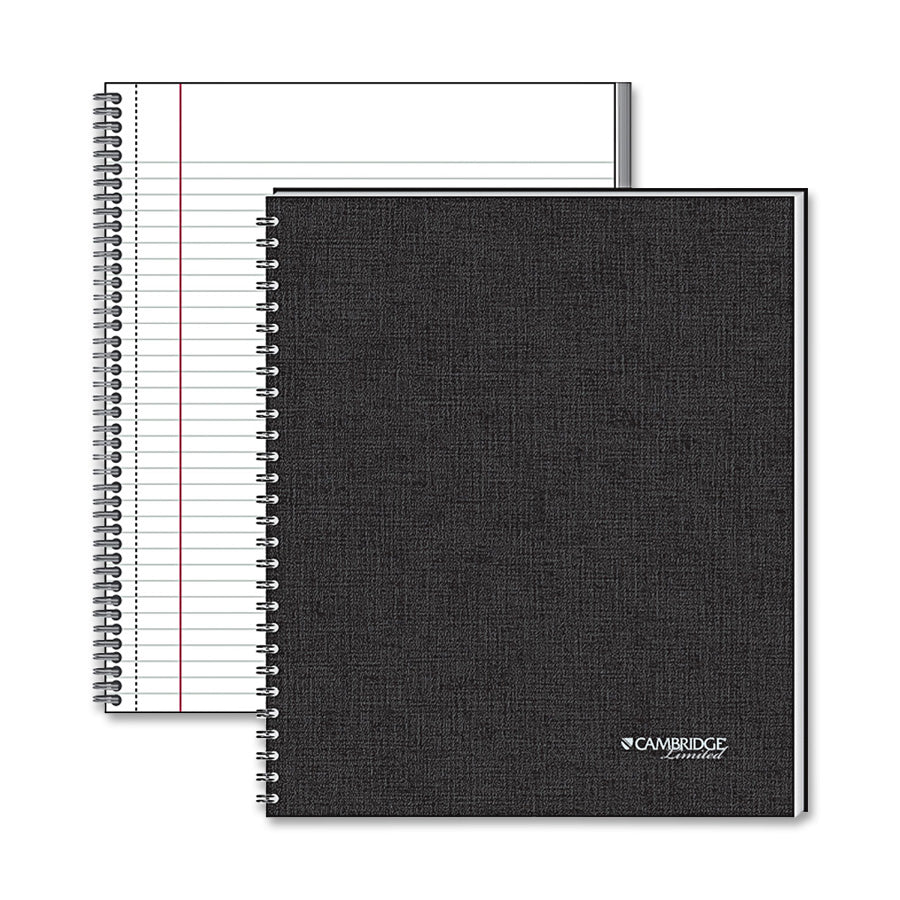 Business notebook features a professional, flexible cover with foil-stamped black linen and black twin-wire binding. Premium, 20 lb. bond paper is ruled. Perforations allow easy, clean removal. Wire-bound book contains 80 sheets in a one-subject format.