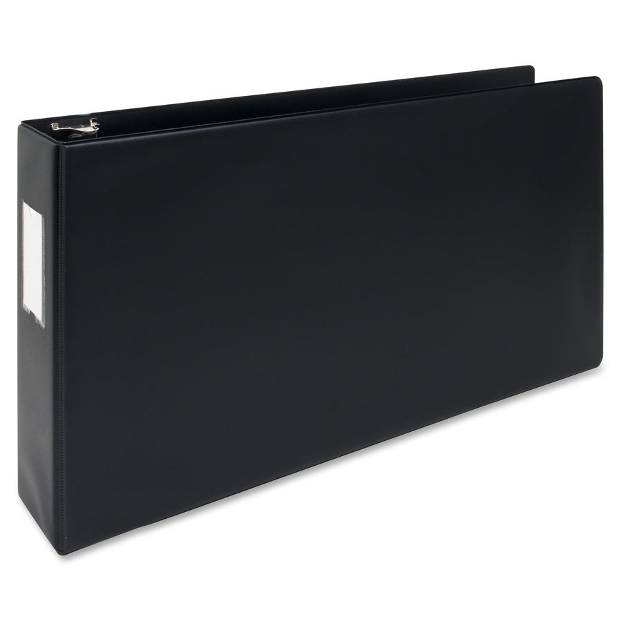 Round-ring binder with label holder is perfect to store tabloid-size documents. Everyday durability is suited for active projects. Use the clear overlay on the spine for easy labeling. Rings are back-mounted so pages lie flat.