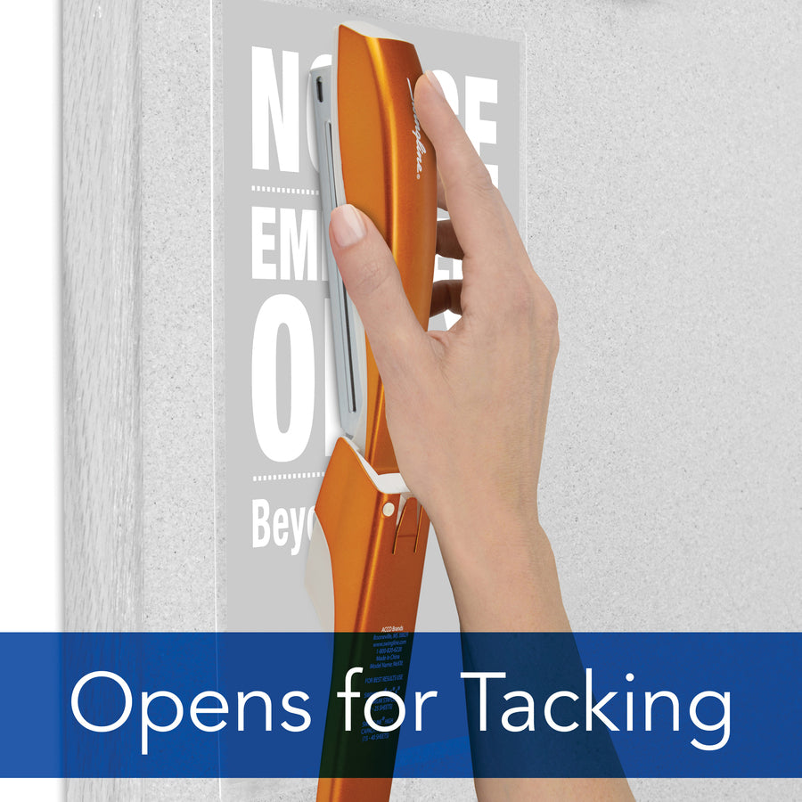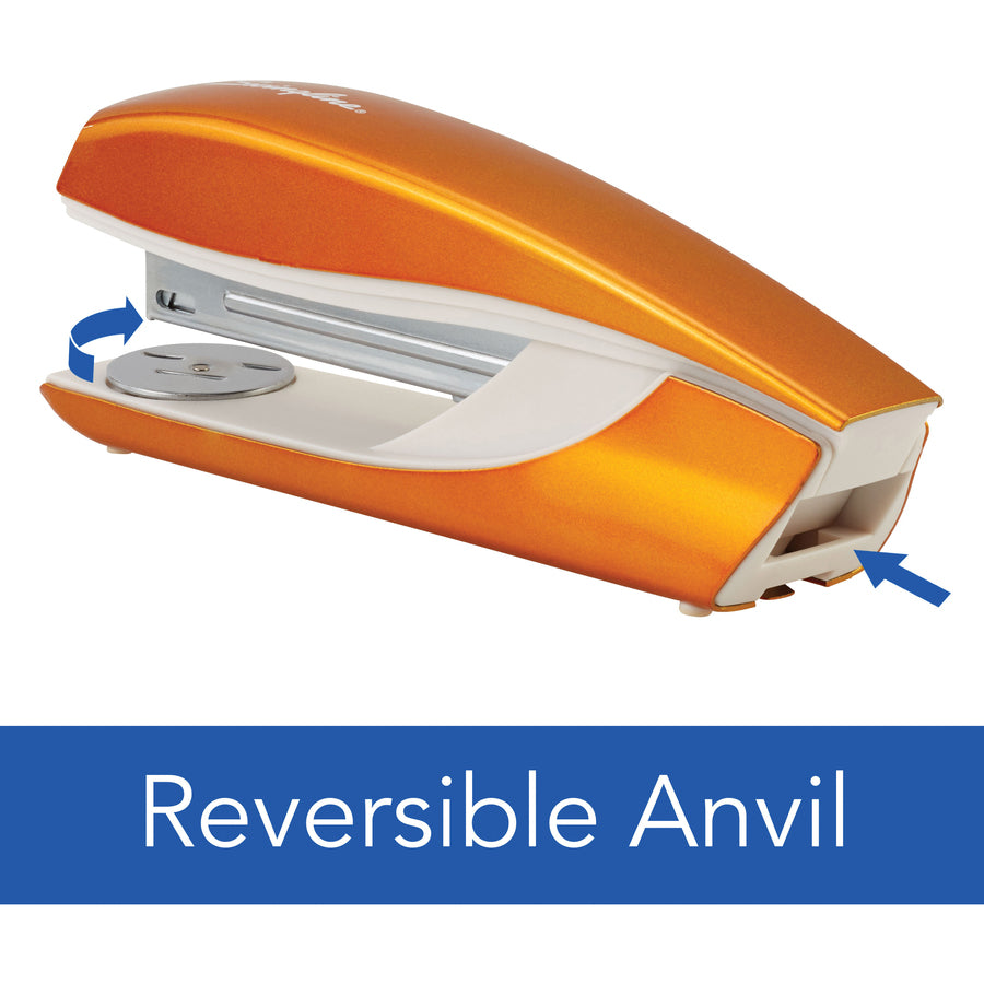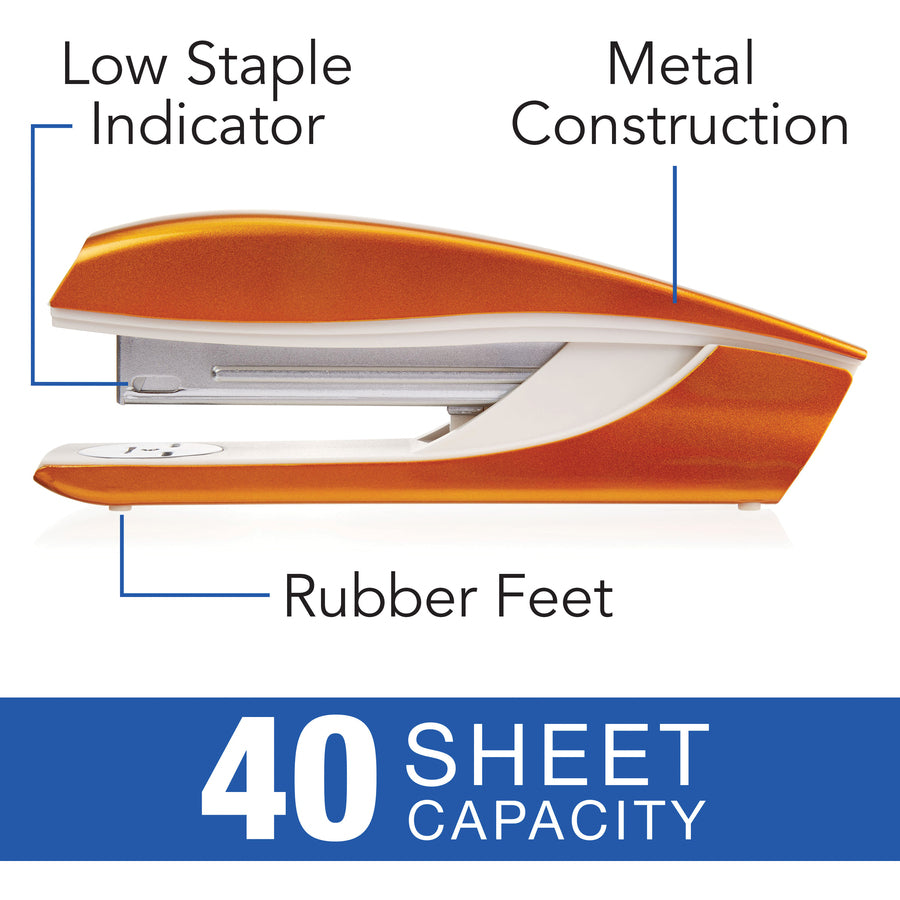 Take the hassle out of stapling with this high-performance stapler that easily staples up to 40 sheets at once. Direct Impact technology ensures you always get a jam-free staple for consistent performance. Its vibrant colors with a metallic finish let you stand out from the crowd. Integrated staple remover allows you to quickly remove unwanted staples without requiring any extra tools. Stapler also opens for tacking and includes an adjustable anvil for open or closed stapling.