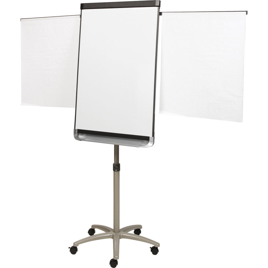 Prestige 2 frame presentation easel offers triple functionality: whiteboard, magnetic bulletin board and flipchart stand. Extension arms on each side of the easel provide the flexibility to use two flipchart easel pads and the whiteboard at the same time.