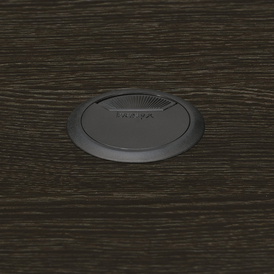 Rectangular desk shell is part of the HON BL Laminate Furniture Collection that delivers a professional look on a budget. Tough and practical, this collection simply makes sense, helping you get the job done without a lot of bother. Modular components support popular U-shaped and L-shaped layouts. Durable, 1" thick top is covered with thermal-fused Espresso laminate that is abrasion-resistant and stain-resistant. Modesty panel is full-height for maximum privacy, and recessed design provides overhang for visitor meetings and conferencing. Desk shell also features two black grommets in the top for easy cord management. Adjustable floor-leveling glides provide 1/2" of adjustment. 27-3/4" high pedestals with unfinished tops slide inside this desk shell and are sold separately. Desk shell will also accommodate a 72" hutch (sold separately) on the top.