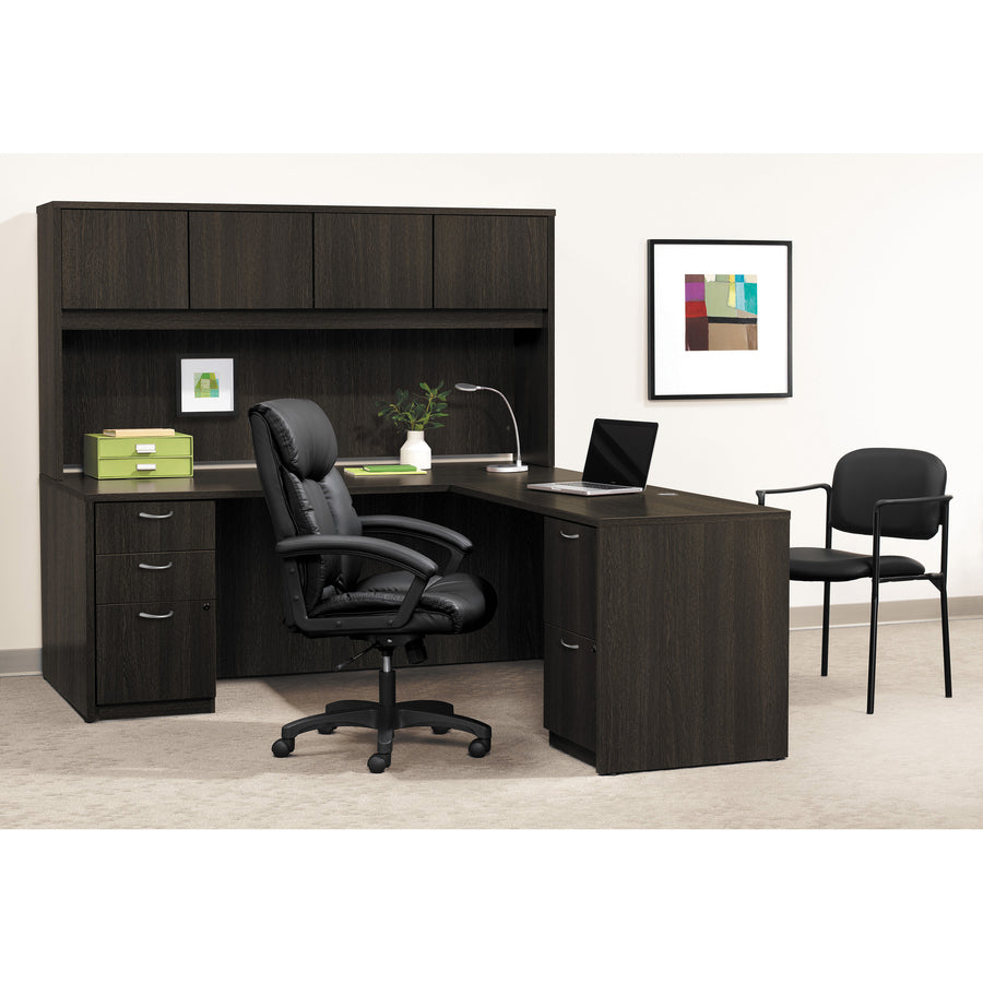 Bridge is part of the HON BL Laminate Furniture Collection that delivers a professional look on a budget. Tough, affordable and practical, this collection simply makes sense, helping you get the job done without a lot of bother. Modular components support popular, U-shaped and L-shaped layouts. Durable, 1" thick top is covered with abrasion-resistant, stain-resistant, thermal-fused, Espresso laminate. Modesty panel is full-height for maximum privacy. Bridge shell also features one black grommet in the top surface and a one-cord pass-through grommet in the center of the modesty panel for easy cord management. Adjustable floor-leveling glides provide 1/2" of adjustment.