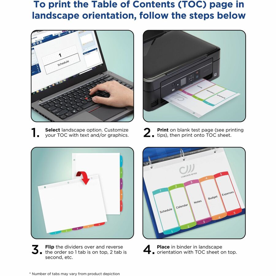 Avery® Ready Index® Customizable Table of Contents Dividersfor Laser and Inkjet Printers, 12 tabs, 1 set