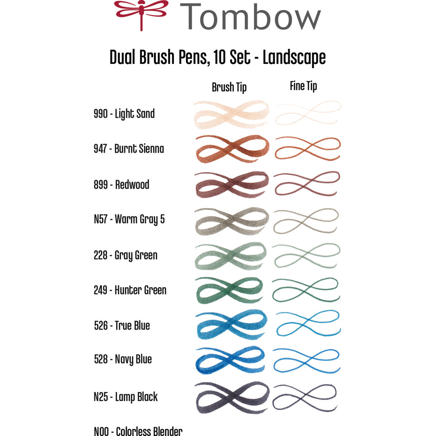 Tombow Dual Brush Art Pen 10-piece Set - Landscape Colours
