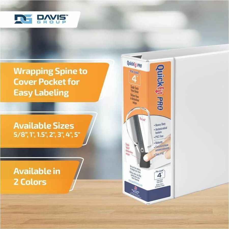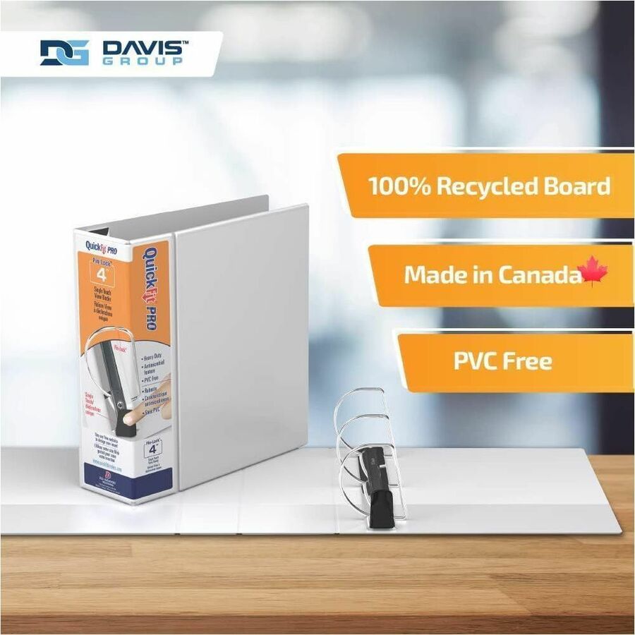Marketing Information: Organize your home, school, or office space with our QuickFit Heavy-Duty Single-Touch View Binder. From school plans to company data, each of your documents can have a designated place. This three-ring binder includes 2 interior pockets: 1 inside the front cover and 1 inside the back cover. The pockets give you extra room to store small items that you don't want to punch holes in, such as artwork, blueprints, or note cards, and the clear ink-resistant material allows you to see what's in each pocket. The single-touch, pin-lock, gapless locking D-ring system makes this office binder easy to open, close, and load paper in while keeping your documents secure. Our QuickFit clear-view binder also features a unique overlay design that allows you to use a single sheet of paper to design a custom decorative leaf insert that wraps around the spine to the front cover. An insert is easy to place and allows you to quickly identify every single binder. Whether you need a college binder or a sleek professional binder, our QuickFit binder is the perfect fit. Whether you're looking for a small, medium, or large binder, there's a QuickFit binder for you. Each durable binder is made in Canada from PVC-free polypropylene material. No matter your organizational needs, our binders will help you stay on top of every subject, deadline, and project. Davis Group is a privately owned Canadian company dedicated to providing premium-quality products. We are committed to using environmentally friendly materials, and we craft each product to be high-quality, accessible, and environmentally conscious.