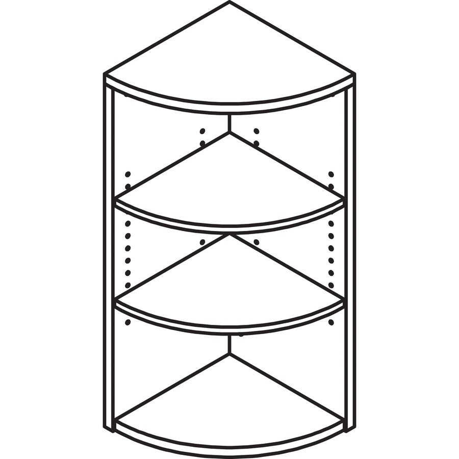 Hutch End Corner Bookcase is part of Lorell Essentials Series Laminate Furniture that offers high-quality laminate construction and a contemporary design. Shelves are made of medium-density fiberboard with thermally fused, Cherry laminate for long-lasting use. The visible backing behind the shelves is made with 3.18mm thick, medium-density fiberboard and matching laminate. Bookcase features two adjustable shelves and one fixed bottom shelf.