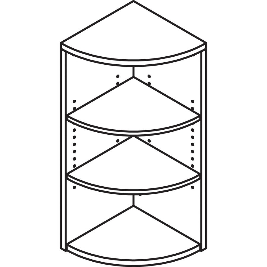 Hutch End Corner Bookcase is part of Lorell Essentials Series Laminate Furniture that offers high-quality laminate construction and a contemporary design. Shelves are made of medium-density fiberboard with thermally fused, Mahogany laminate for long-lasting use. The visible backing behind the shelves is made with 3.18mm thick, medium-density fiberboard and matching laminate. Bookcase features two adjustable shelves and one fixed bottom shelf.