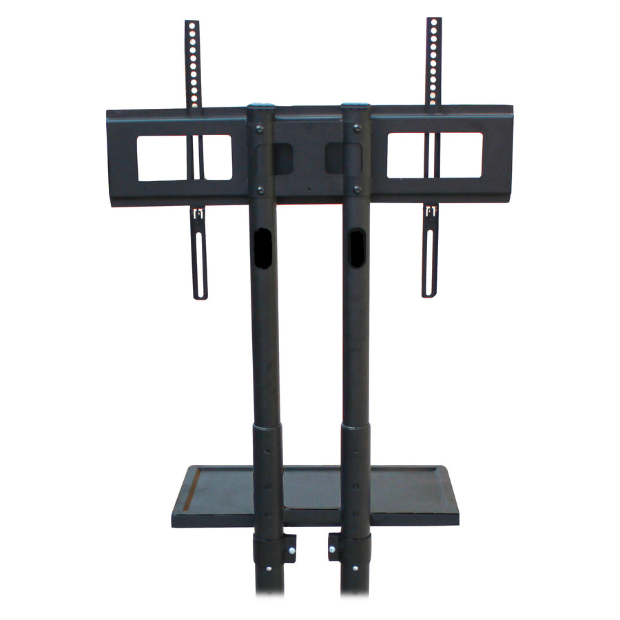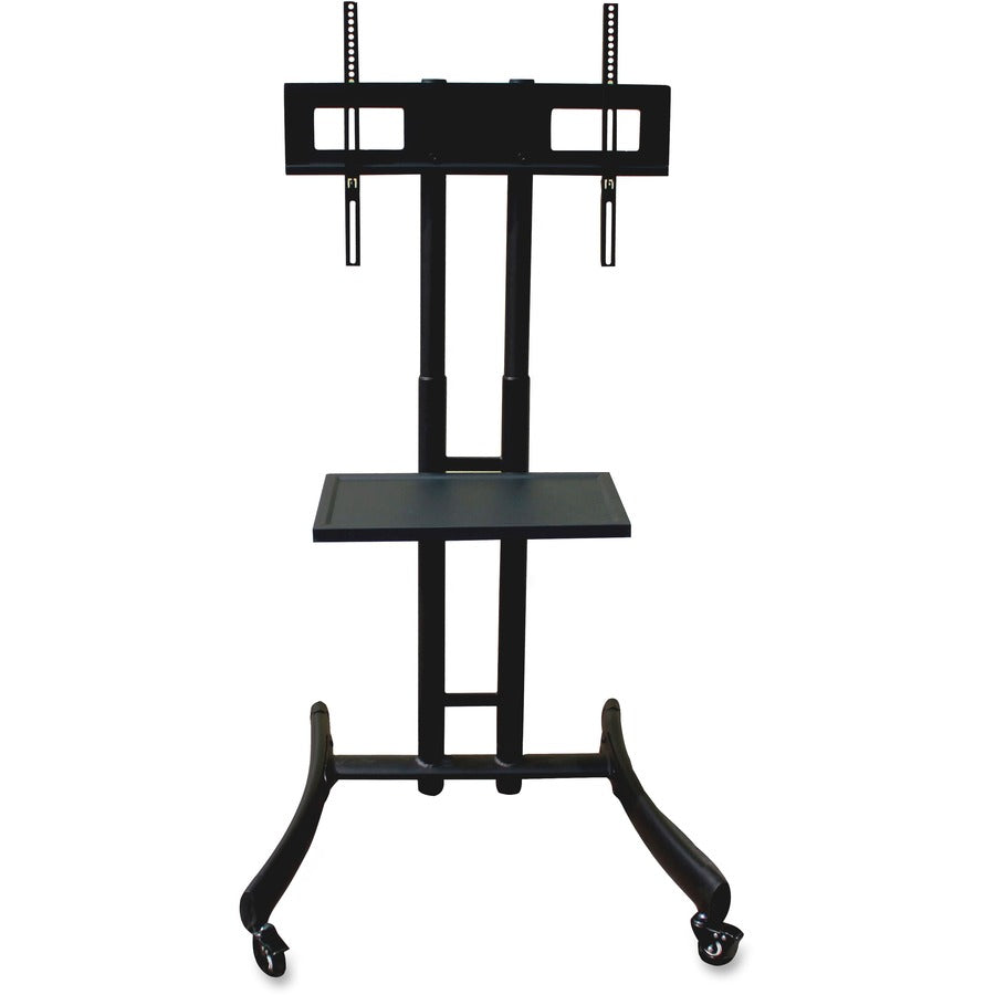 Flat Panel TV Cart holds a large TV up to 61" and 100 lb. in standard horizontal (landscape) orientation. It's great for use in boardrooms, conferences, presentations, mobile kiosks and digital signage. Sturdy steel cart fits all VESA and non-VESA mounting patterns up to 600 x 400 mm. Telescopic height adjustment ranges from 40" to 67" to top of TV mount for high TV placement and good visibility. Large steel shelf holds up to 10 lb. so it's ideal for most A/V components. Four 2-1/2" casters easily and safely roll over floor transitions from carpet to tile, elevators, brick and more. Casters lock into position for stable display. TV cart includes integrated cable management.