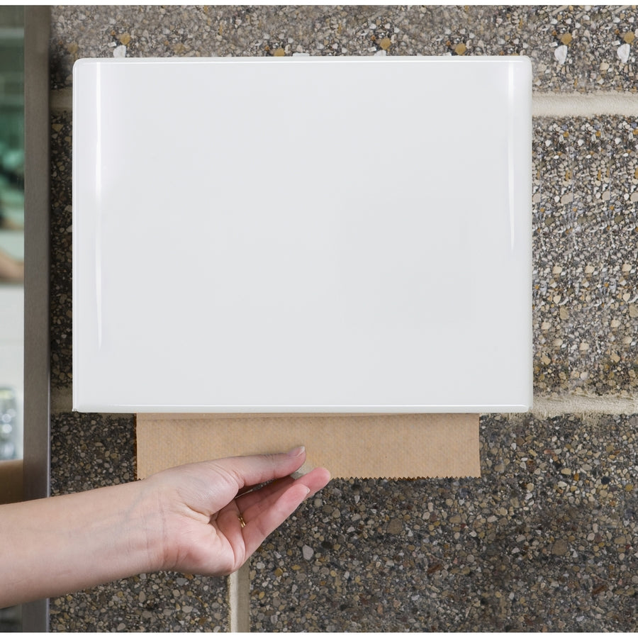 Durable single-fold paper towel dispenser is easily installed and maintained. Enameled steel dispenser features a quick view slot for easy service checks.