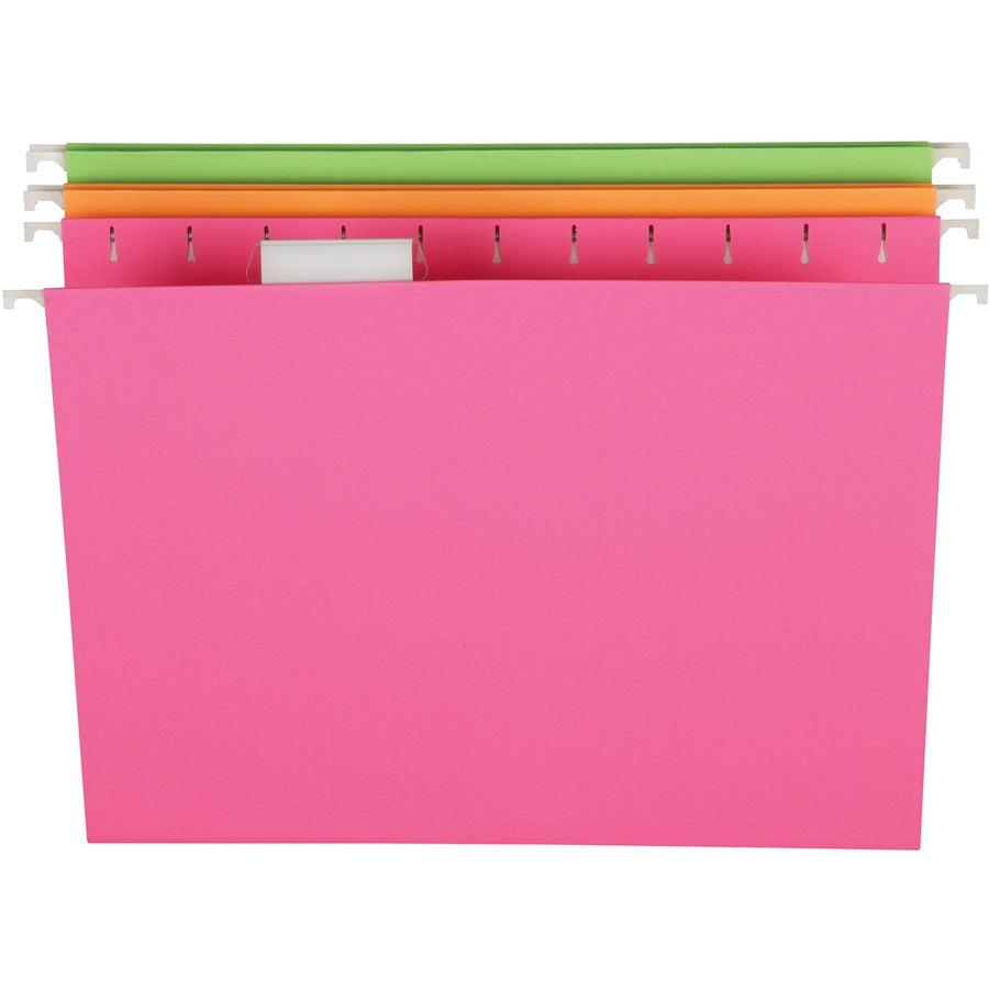 Glow hanging file folders help you quickly find the folder you need in your filing system. Assorted fluorescent colors are perfect for color-coding important documents and files. File folders accept letter-size papers.