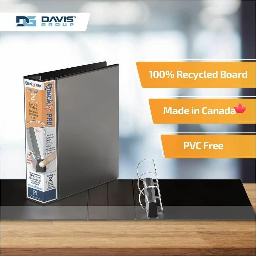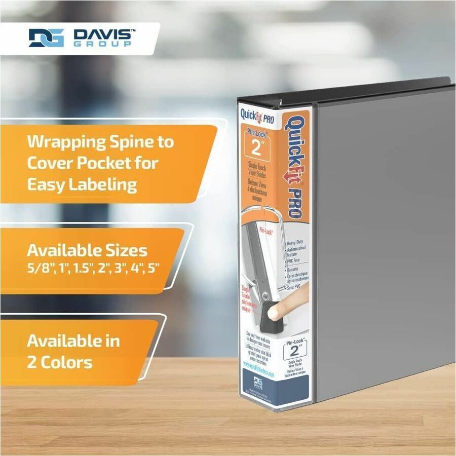 Marketing Information: Organize your home, school, or office space with our QuickFit Heavy-Duty Single-Touch View Binder. From school plans to company data, each of your documents can have a designated place. This three-ring binder includes 2 interior pockets: 1 inside the front cover and 1 inside the back cover. The pockets give you extra room to store small items that you don't want to punch holes in, such as artwork, blueprints, or note cards, and the clear ink-resistant material allows you to see what's in each pocket. The single-touch, pin-lock, gapless locking D-ring system makes this office binder easy to open, close, and load paper in while keeping your documents secure. Our QuickFit clear-view binder also features a unique overlay design that allows you to use a single sheet of paper to design a custom decorative leaf insert that wraps around the spine to the front cover. An insert is easy to place and allows you to quickly identify every single binder. Whether you need a college binder or a sleek professional binder, our QuickFit binder is the perfect fit. Whether you're looking for a small, medium, or large binder, there's a QuickFit binder for you. Each durable binder is made in Canada from PVC-free polypropylene material. No matter your organizational needs, our binders will help you stay on top of every subject, deadline, and project. Davis Group is a privately owned Canadian company dedicated to providing premium-quality products. We are committed to using environmentally friendly materials, and we craft each product to be high-quality, accessible, and environmentally conscious.