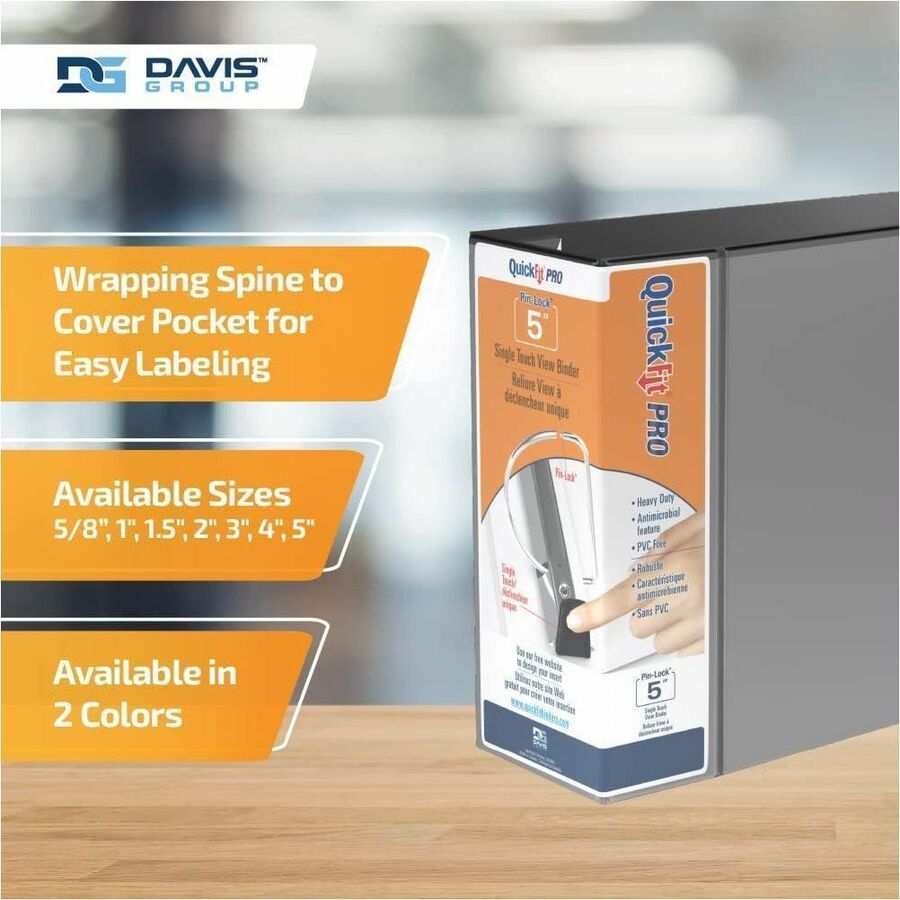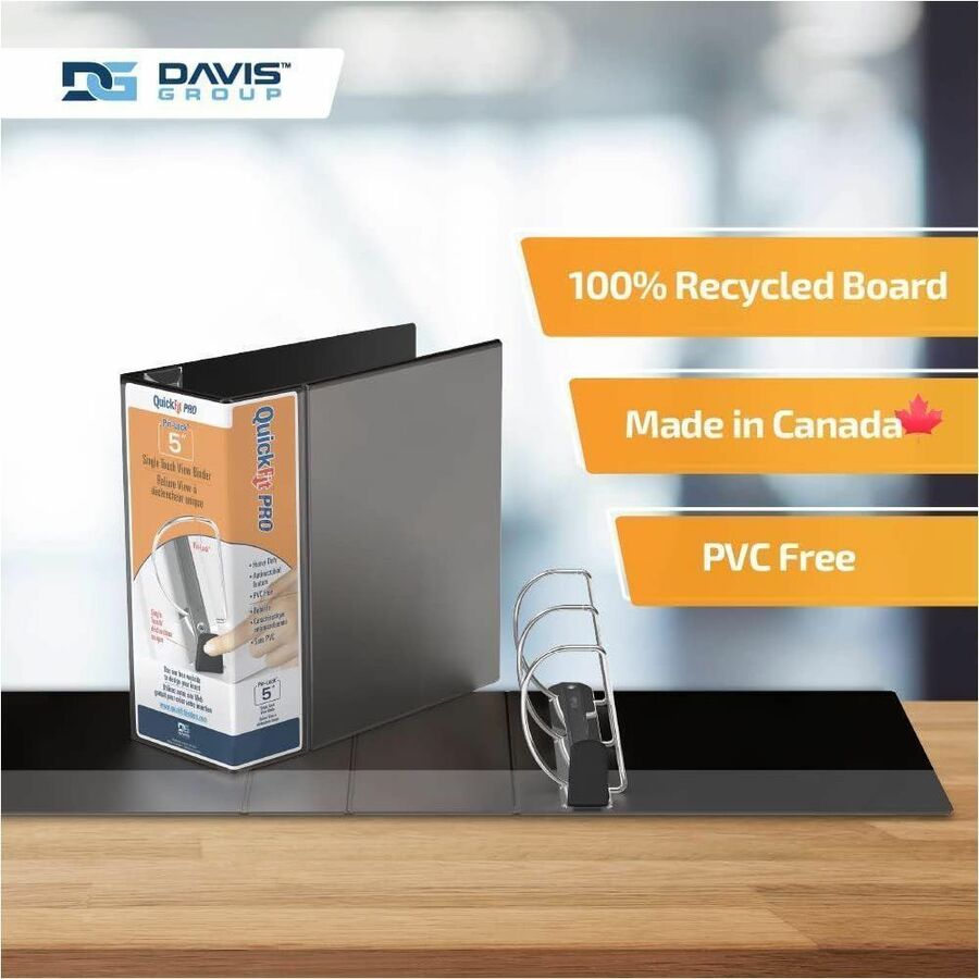 Marketing Information: Organize your home, school, or office space with our QuickFit Heavy-Duty Single-Touch View Binder. From school plans to company data, each of your documents can have a designated place. This three-ring binder includes 2 interior pockets: 1 inside the front cover and 1 inside the back cover. The pockets give you extra room to store small items that you don't want to punch holes in, such as artwork, blueprints, or note cards, and the clear ink-resistant material allows you to see what's in each pocket. The single-touch, pin-lock, gapless locking D-ring system makes this office binder easy to open, close, and load paper in while keeping your documents secure. Our QuickFit clear-view binder also features a unique overlay design that allows you to use a single sheet of paper to design a custom decorative leaf insert that wraps around the spine to the front cover. An insert is easy to place and allows you to quickly identify every single binder. Whether you need a college binder or a sleek professional binder, our QuickFit binder is the perfect fit. Whether you're looking for a small, medium, or large binder, there's a QuickFit binder for you. Each durable binder is made in Canada from PVC-free polypropylene material. No matter your organizational needs, our binders will help you stay on top of every subject, deadline, and project. Davis Group is a privately owned Canadian company dedicated to providing premium-quality products. We are committed to using environmentally friendly materials, and we craft each product to be high-quality, accessible, and environmentally conscious.