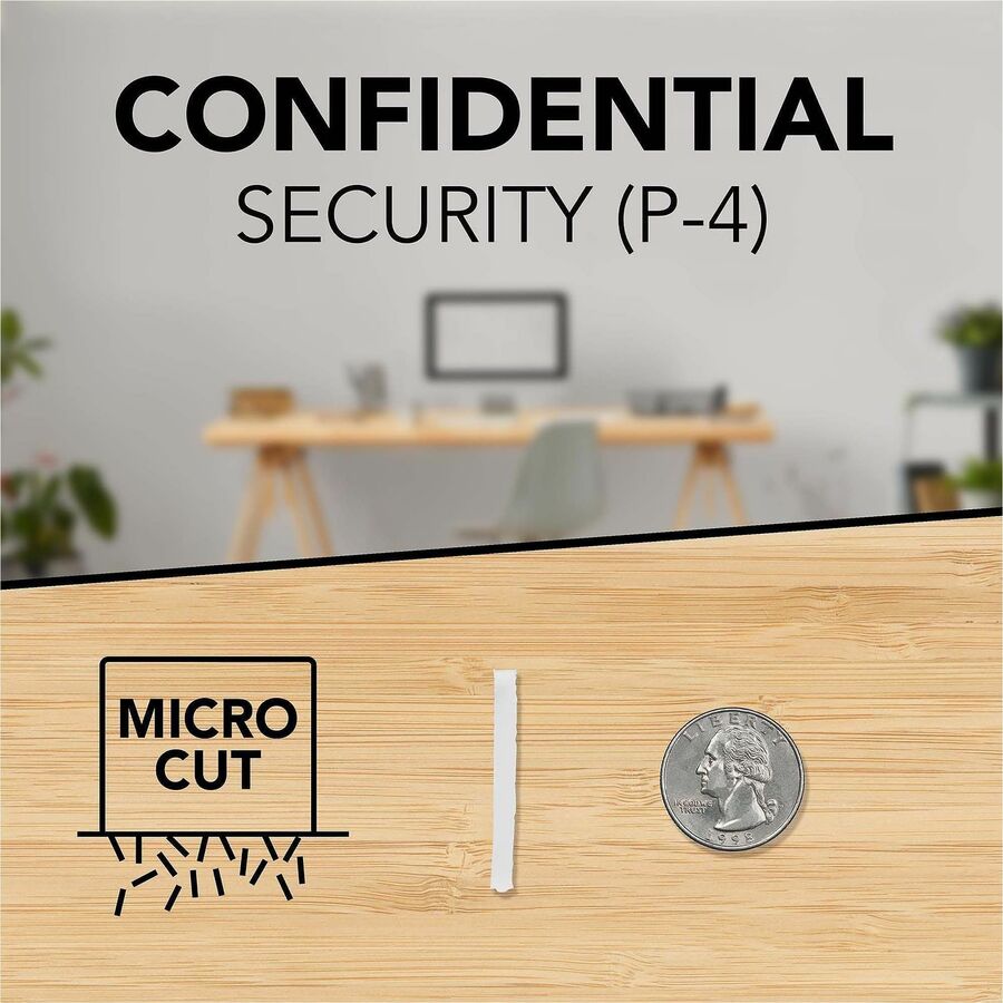 GBC® ShredMaster™ PX10-06 Super Cross-Cut Shredder. Protect your personal information with ShredMaster™ PX10-06 Super Cross-Cut Shredder. Whisper Shred Technology and a modern user interface make it a valuable addition to your workspace. Confidential Security (Level P-4) for business and sensitive personal information. Super Cross Cut shreds documents into 3 /16" x 1-1/2" pieces. Shreds up to 10 sheets at a time. Also shreds through staples and paperclips. 6 gallon bin provides large shred capacity. 6 minute run time. Modern interface with user friendly touch controls. Front facing shredder is optimal for placement beside the desk. Whisper Shred Technology ensures a quieter shredding experience, operating below 62 Dba. Front facing shredder is optimal for placement beside the desk. Auto reverse jam prevention function. Recessed blades prevent user injury. Limited 2-year warranty.