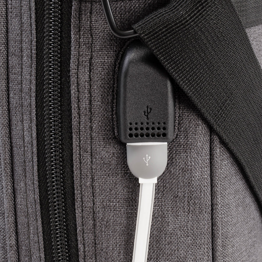 Notebook briefcase features RFID blocking technology to protect you from identity theft. Padded pocket keeps laptops up to 15.6" safe from scuffs and scratches. Organizer pockets keep an assortment of items neatly tucked away and within quick reach. Adjustable shoulder strap with a nonslip pad and double carry handles help you travel in comfort. Back trolley loop fits over the upright handles of your luggage for consolidated travel. External USB port allows you to easily charge your devices using a power bank (sold separately).