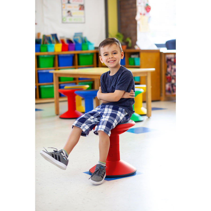 Wiggle stool features an adjustable seat height in 2" increments to grow with your students and eliminate guesswork when ordering. The tamperproof, adjustable height reduces distractions and helps promote a focused environment. Extra-thick, padded seat allows comfortable all-day use. Rubberized, nonskid base is angled for improved posture, balance and stability. It also ensures users keep their back straight and feet on the ground. Integrated handles allow easy carrying, even for smaller children. Unique design inhibits students from spinning on the chair. Stool is designed to support up to 250 lb.