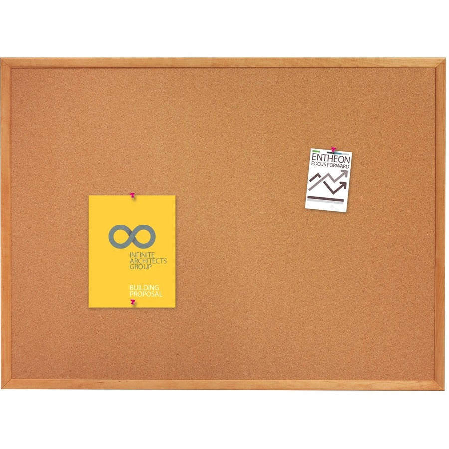 - Standard Cork Bulletin Board, Oak Finish Frame, 2' x 1.5'