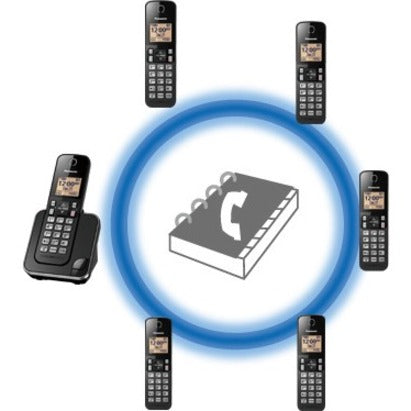 Dial information registered to the phonebook can be shared with the base unit and all handsets to reduce phonebook registration work. The existing phonebook can also be used immediately when new handsets are added.