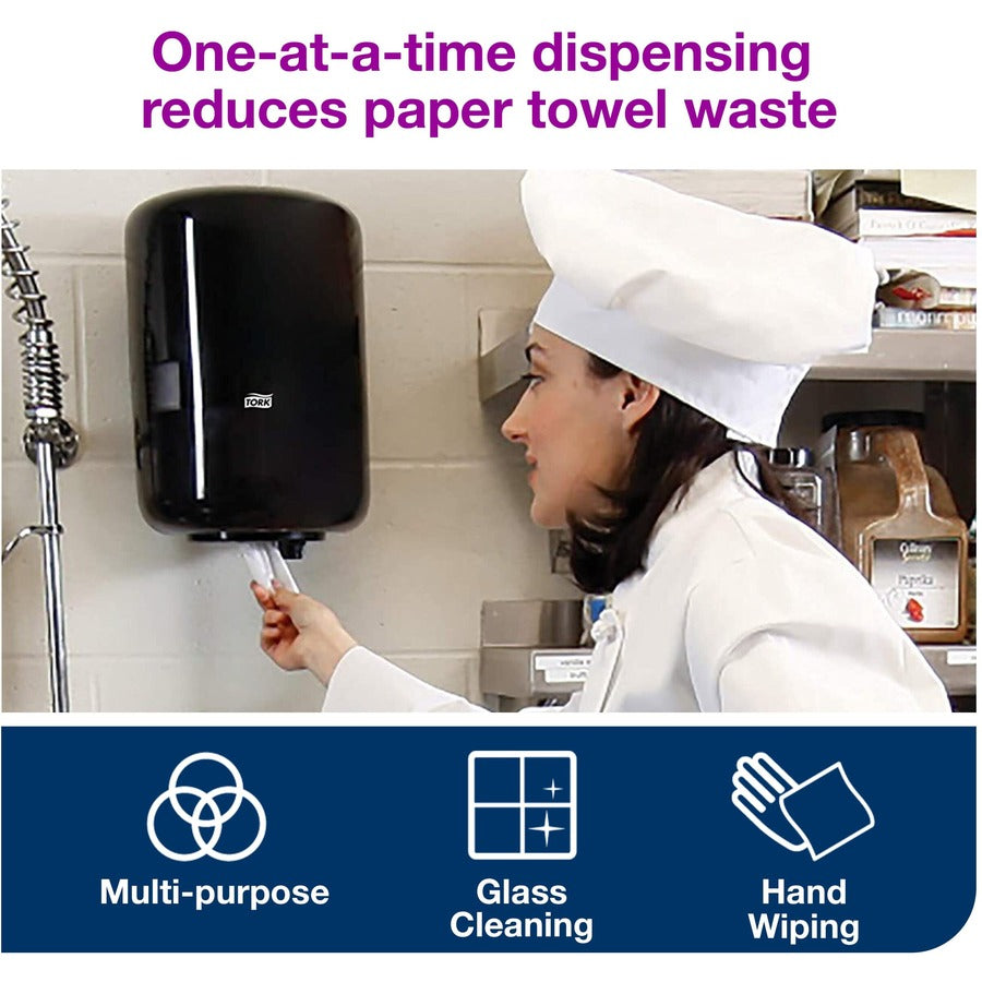 Reduce waste, cross-contamination and empty hand towel dispensers that can detract from your guests' satisfaction with Tork® soft centerfeed hand towels. One-at-a-time dispensing means patrons touch only the towel they use, limiting cross contamination, and the high absorbency of our towels means patrons need and use fewer paper towels. With high capacity packaging, fewer refills are required, reducing labor expenses and increasing guest approval.