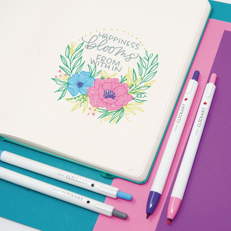 Zebra Pen ClickArt Retractable Markers Bullet Tip Assorted Colours 6/pkg