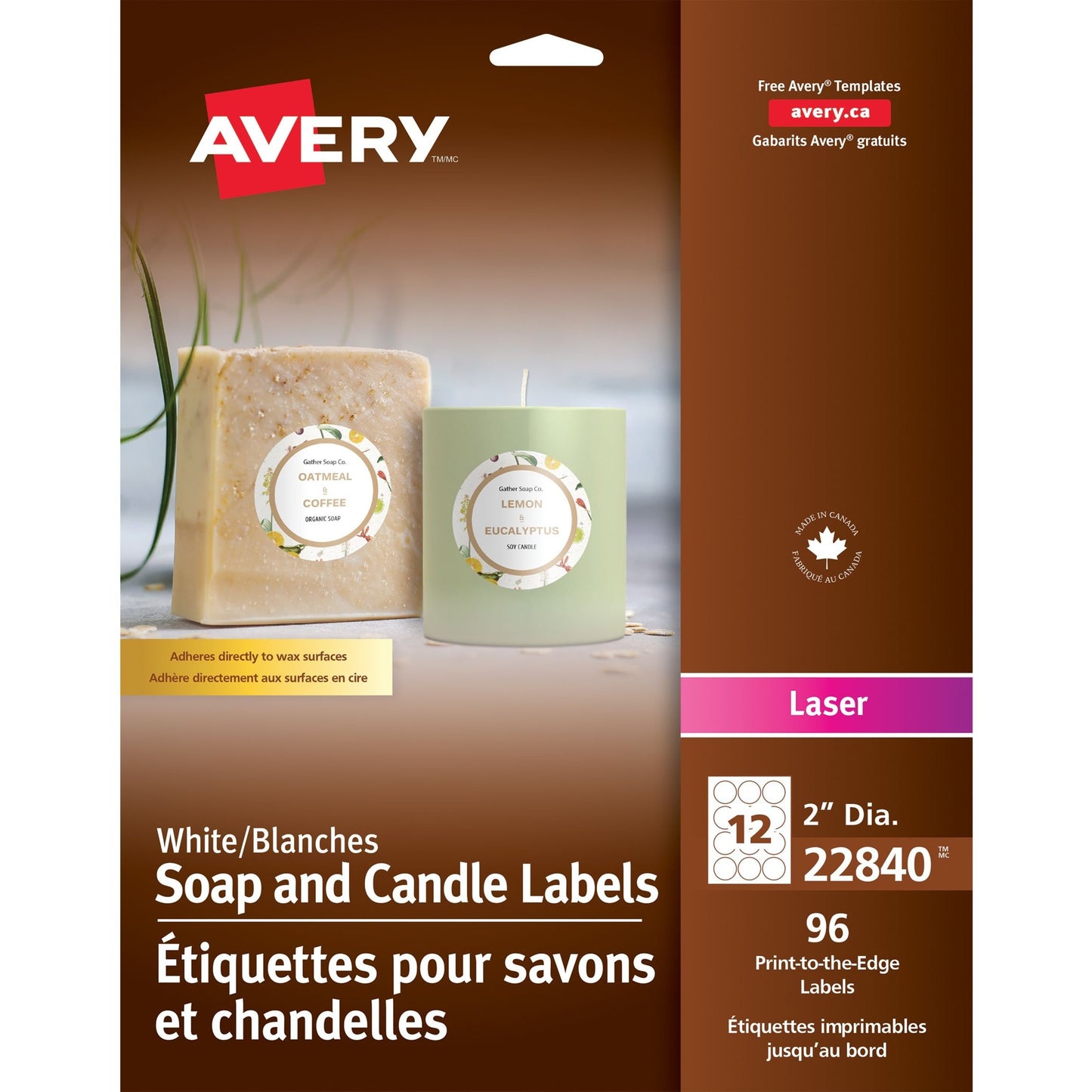 Avery® Glossy White Round Soap and Candle Labels 2" Diameter, Permanent Adhesive, for Laser Printers