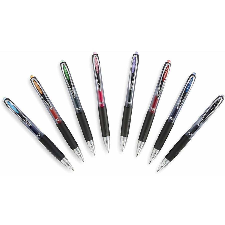 Retractable gel pen contains special formulated, acid-free, uni Super Ink that becomes trapped in paper, helping to protect against water, fading and document fraud. Textured rubber grip offers superior writing and control while the retractable tip provides added convenience. Use the clip on the barrel to attach to notebooks, pockets and more. Refill with uni-ball 207 RT refills.