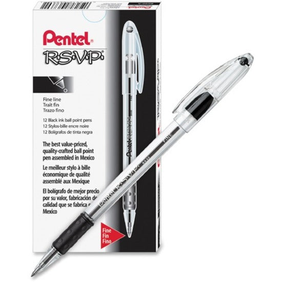 R.S.V.P. Ballpoint Stick Pens feature an ergonomic barrel design with a soft, latex-free, rubberized, Comfort Zone grip. Refillable pen delivers exceptional balance, comfort and control for fatigue-free writing. Durable, stainless steel tip delivers a consistent line with smooth ink. Color indicator ball in cap and sleeve on barrel match ink color. Refill with Pentel BKL7 (0.7mm) or BKL10 (1.0mm) refills.