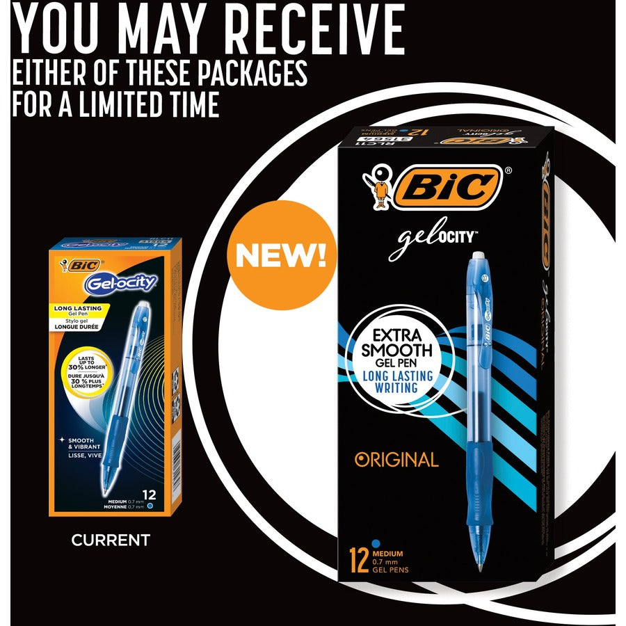 BIC Gel-ocity Original Blue Gel Pens, Medium Point (0.7 mm), 12-Count Pack, Retractable Gel Pens With Comfortable Grip - RLC11 BLU-CA