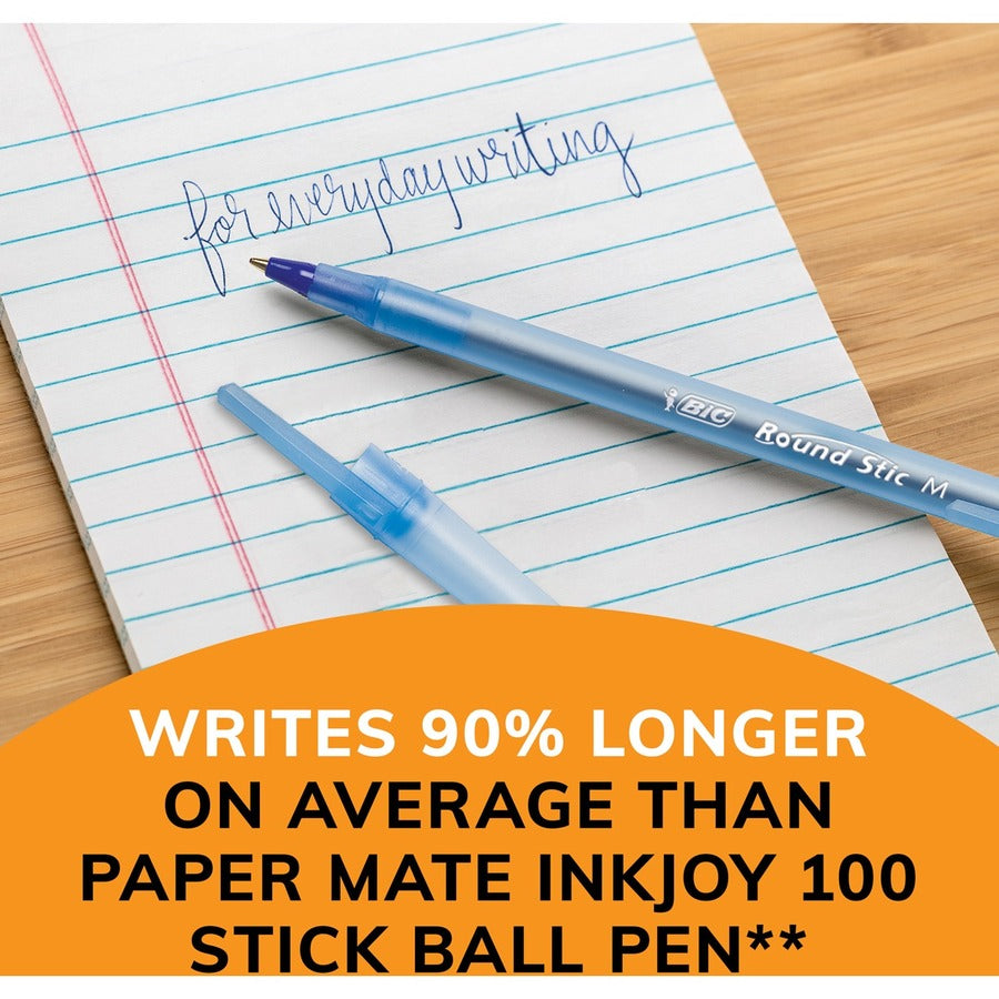 BIC Round Stic Extra Life Blue Ballpoint Pens, Medium Point (1.0 mm), 60-Count Pack of Bulk Pens, Flexible Round Barrel for Writing Comfort, No. 1 Selling Ballpoint Pens