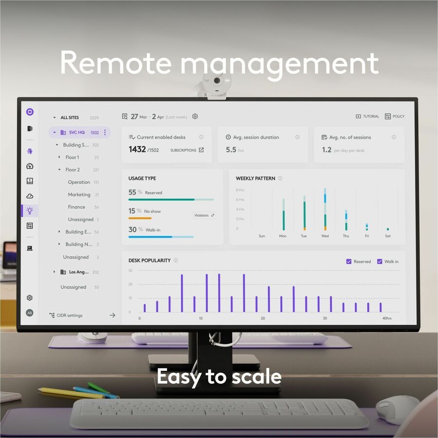 It is easy to set up in small spaces, thanks to multiple mounting options, clean cabling, and a manual privacy shutter. Additionally, you can easily manage your MeetUp 2 and other Logitech video collaboration devices with Logitech Sync - monitor room status, deploy updates, and modify settings all from a single cloud-based app.