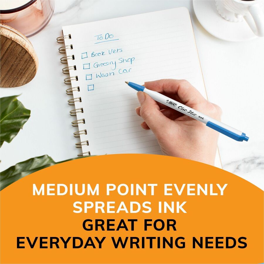 BIC Clic Stic Fashion Retractable Ball Point Pen, Blue, 12 Pack