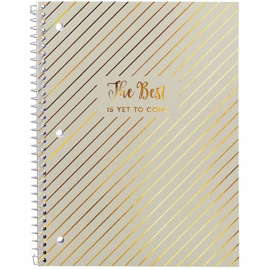 Haze 1- Subject Notebook cardboard cover features hot foil holographic geometric details detailing on the front. . 3-hole punched. Contains 50 sheets of 80 gsm ruled FSC certified paper. Letter-size. 10 x 8''. Assorted blue, green and taupe. 3/Pack.