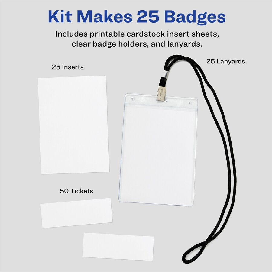 Avery® Vertical Name Badges with Tickets Kit for Laser and Inkjet Printers, 4-1/4" x 6"