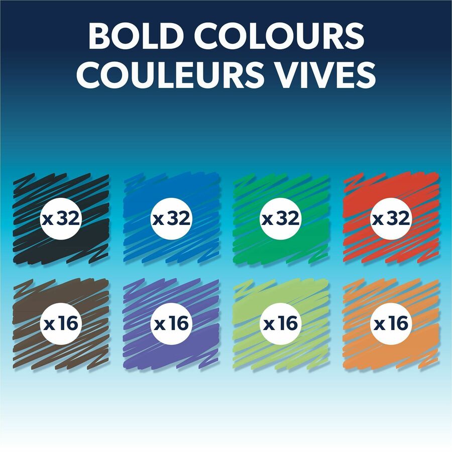 Designed with innovative DryGuard™ Ink Protection, ready to use even if left uncapped for up to 24 hours. Magnetic eraser cap attaches to any magnetic surface. Versatile chisel tip. This pack includes 192 dry erase markers in assorted colours: 32 black, 32 blue, 32 red, 32 green, 16 brown, 16 purple, 16 lime, 16 orange. Low odour.
